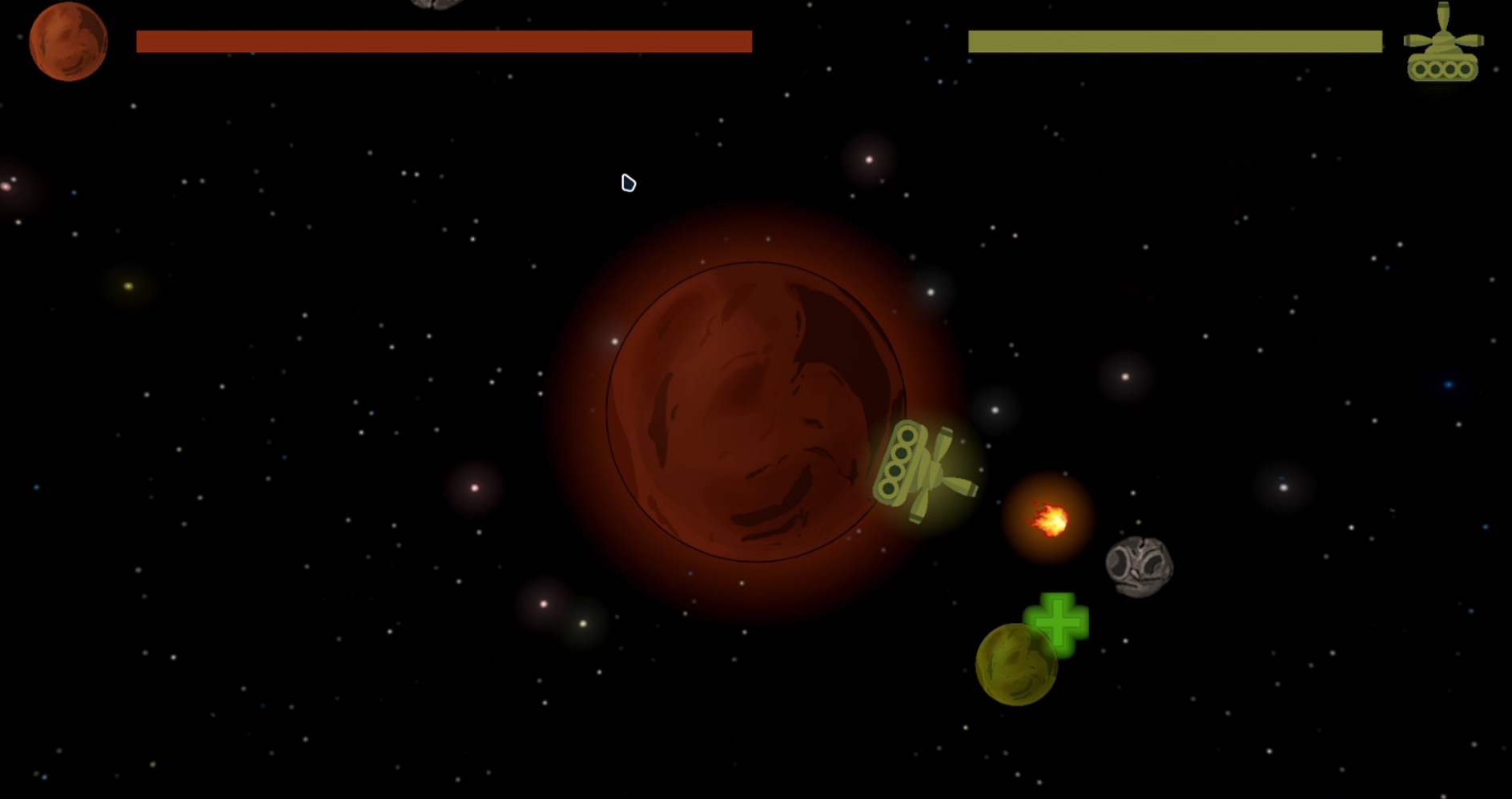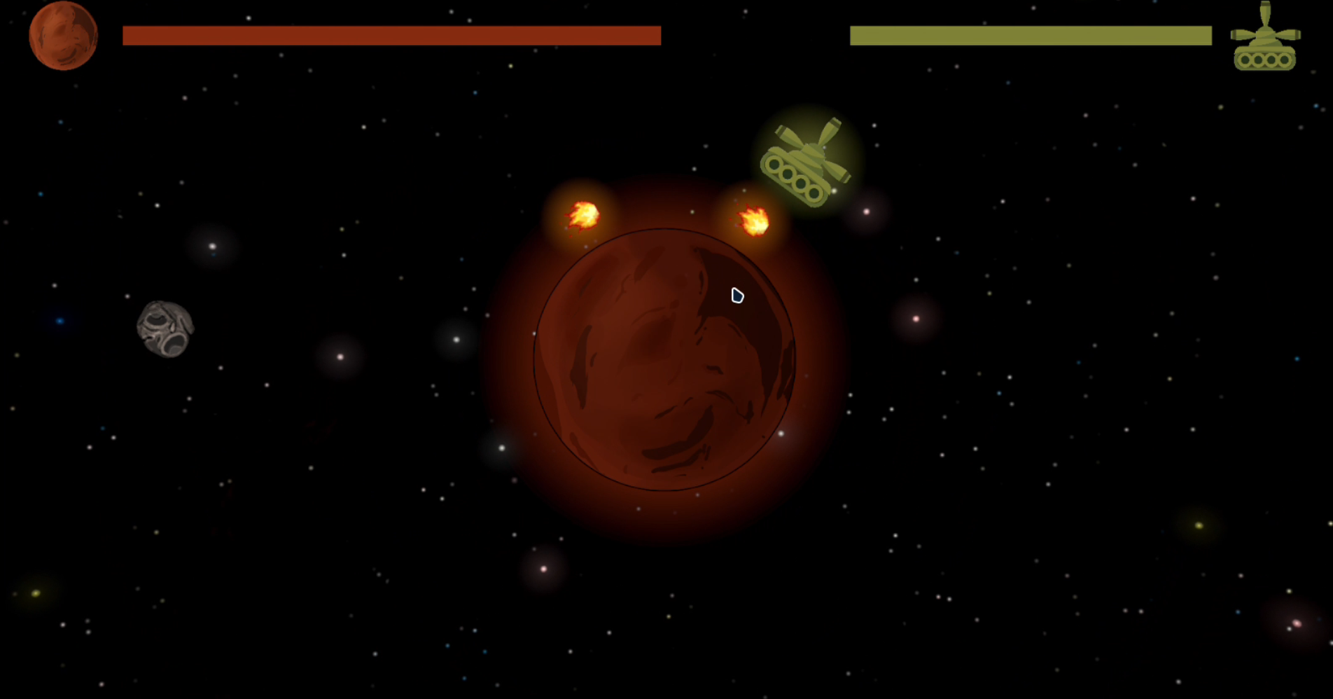 The mechanic of the bullets orbiting around the planet is quite a neat idea :)